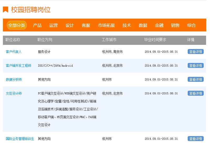 下图是阿里巴巴集团的校园招聘岗位table。